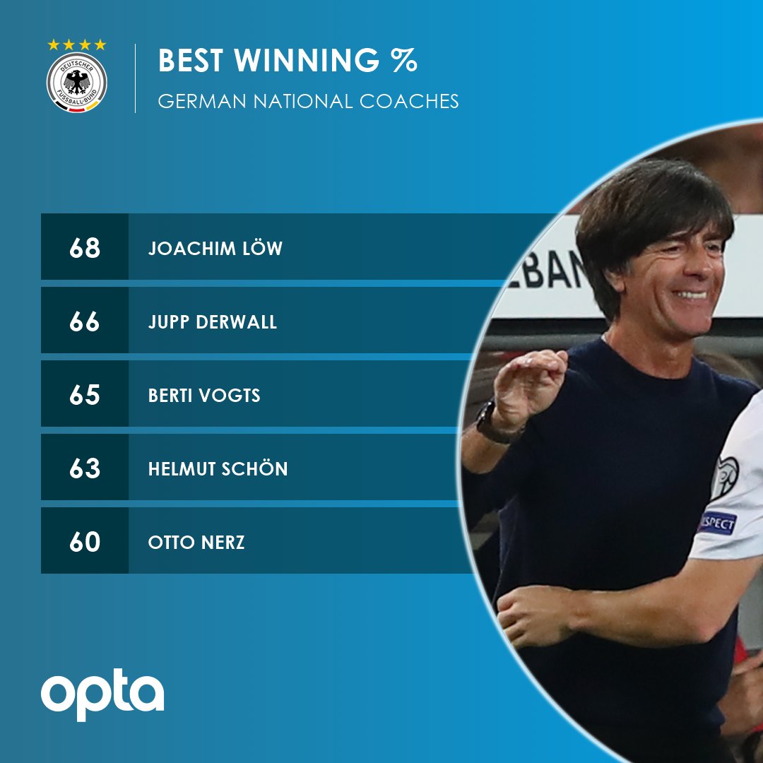 Dengan kemenangan ini, Loew pun kini berada di posisi teratas sebagai pelatih dengan presentase kemenangan tertinggi dengan 68 persen. Pelatih berusia 57 tahun ini telah mendampingi Jerman dalam 155 pertandingan. Dia sukses membawa tim asuhannya meraih 155 pertandingan, 27 kali seri, serta kalah 23 kali.
