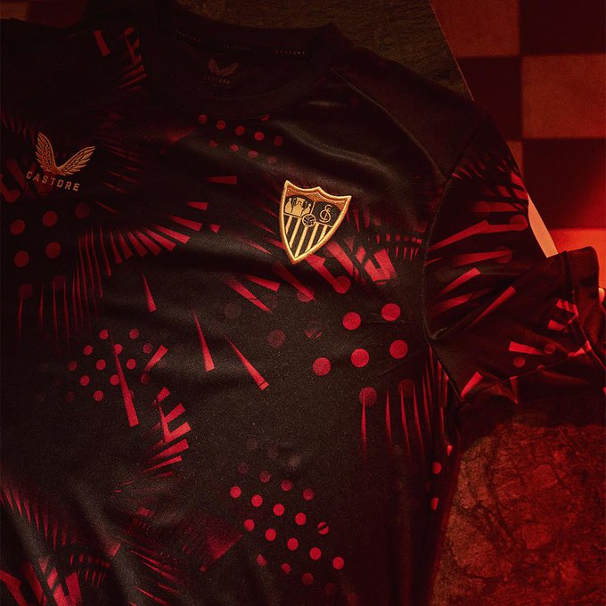 Seragam tandang berwarna merah tradisional, kali ini dipadukan dengan warna ungu Prapaskah. Desainnya mengandung unsur-unsur keramik khas Sevilla, termasuk daun acanthus yang menjadi ciri khas bengkel keramik terkenal seperti Mensaque, Montalván, dan Ramos Rejano. Seragam ini mencerminkan akar klub dan kebanggaan akan kerajinan lokal.
