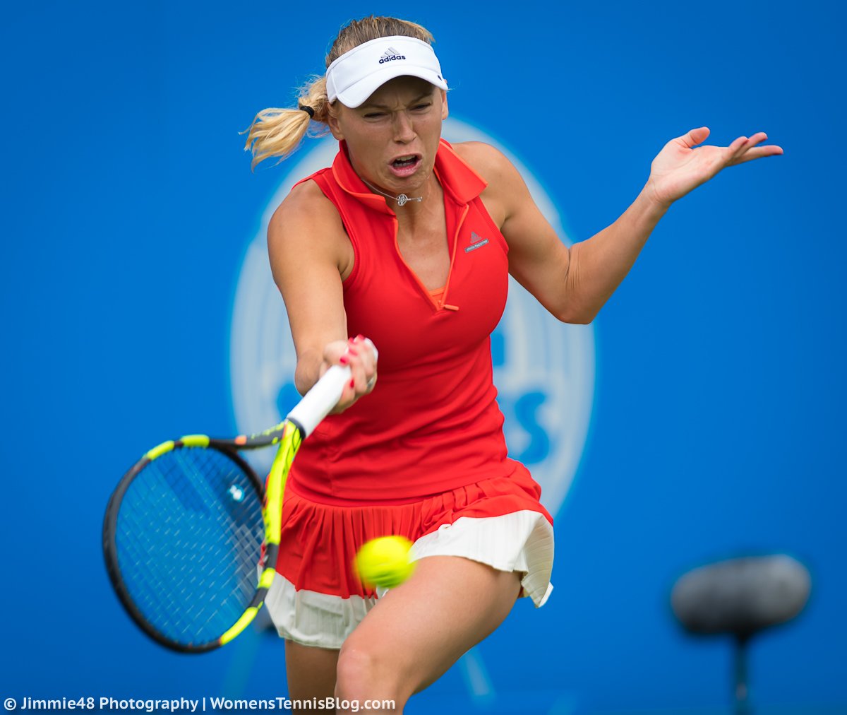 Dengan kemenangan tersebut, Wozniacki membukukan tempat pertama di semifinal Eastbourne. Di semifinal pertamanya di musim grass-court, Wozniacki akan berhadapan dengan Barbora Strycova atau Heather Watson.