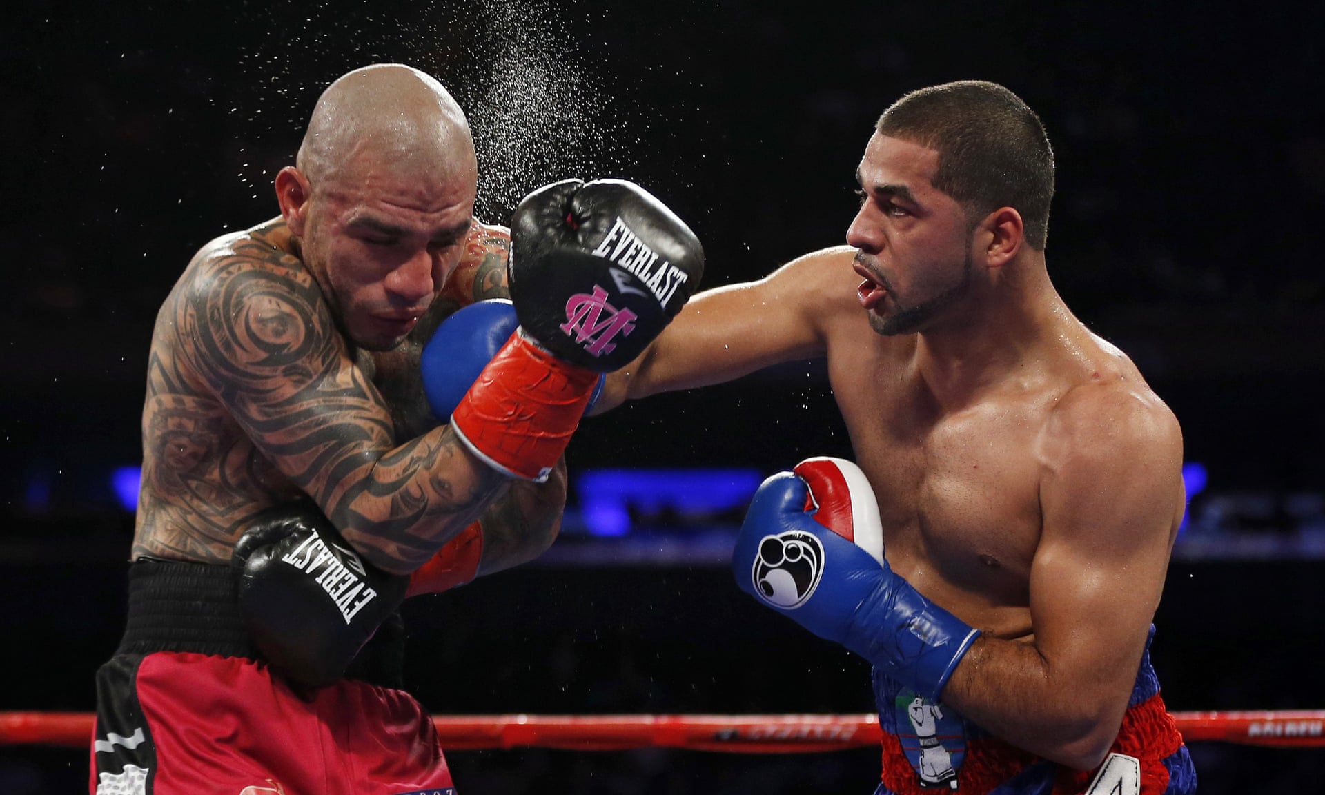Sadam Ali (kiri) menghajar Miguel Cotto dalam laga Sabtu (2/12) atau Minggu pagi WIB.